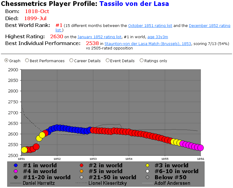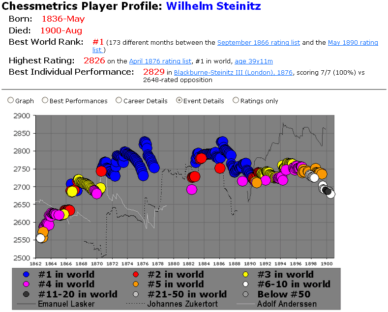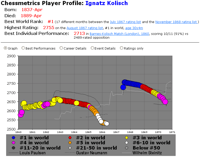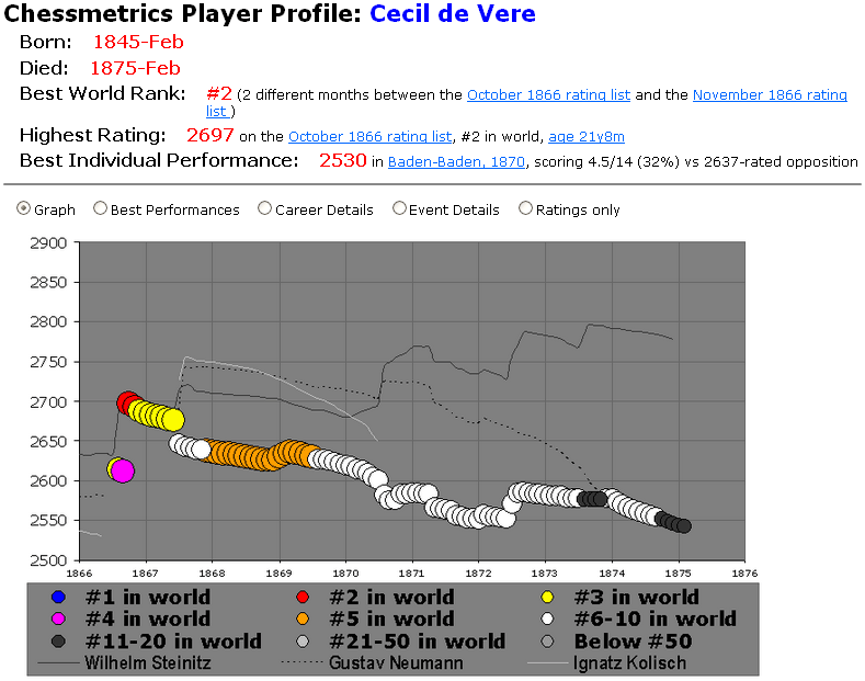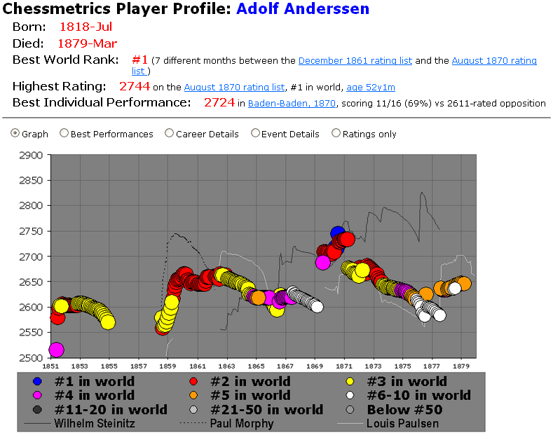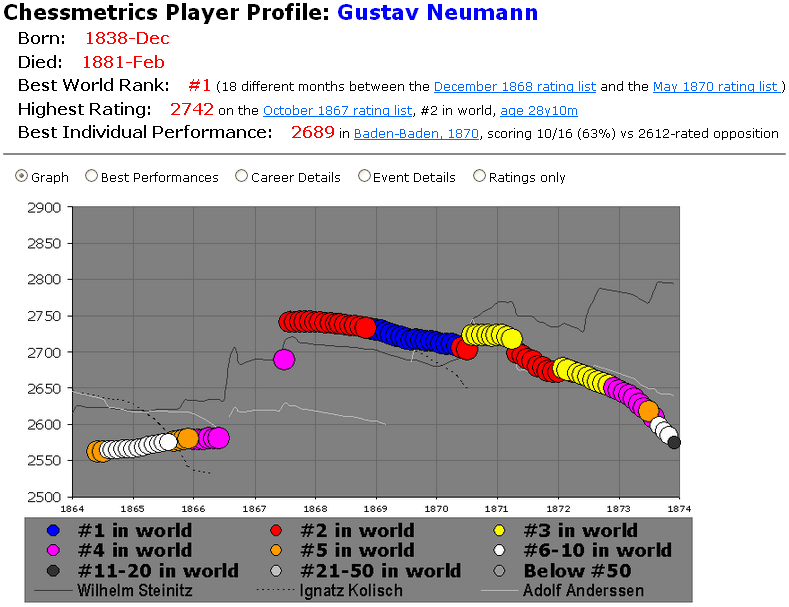 2702 in Baden-Baden, 1870, scoring 10/16 (63%) vs 2628-rated opposition