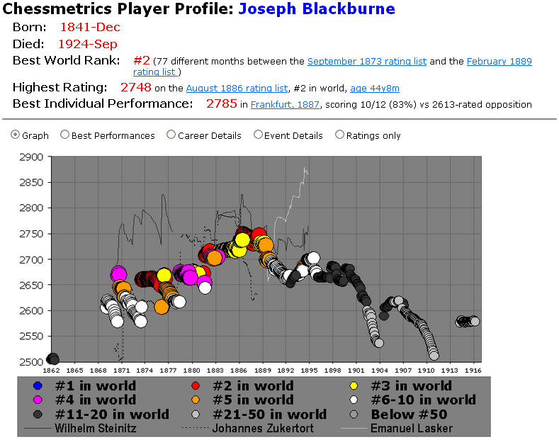 2785 in Frankfurt, 1887, scoring 10/12 (83%) vs 2613-rated opposition