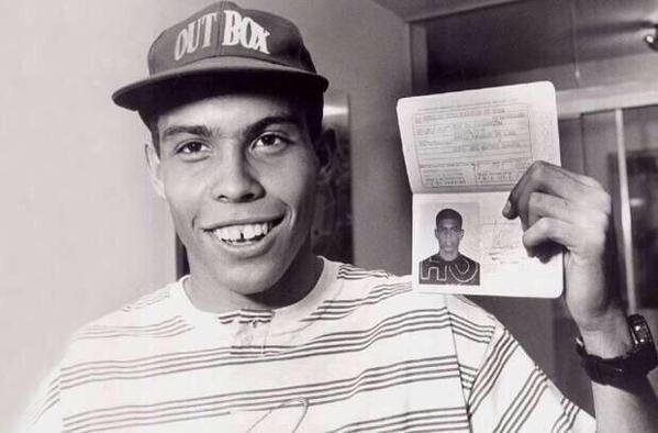 Ronaldo with his passport on route to PSV Eindhoven, 1994.