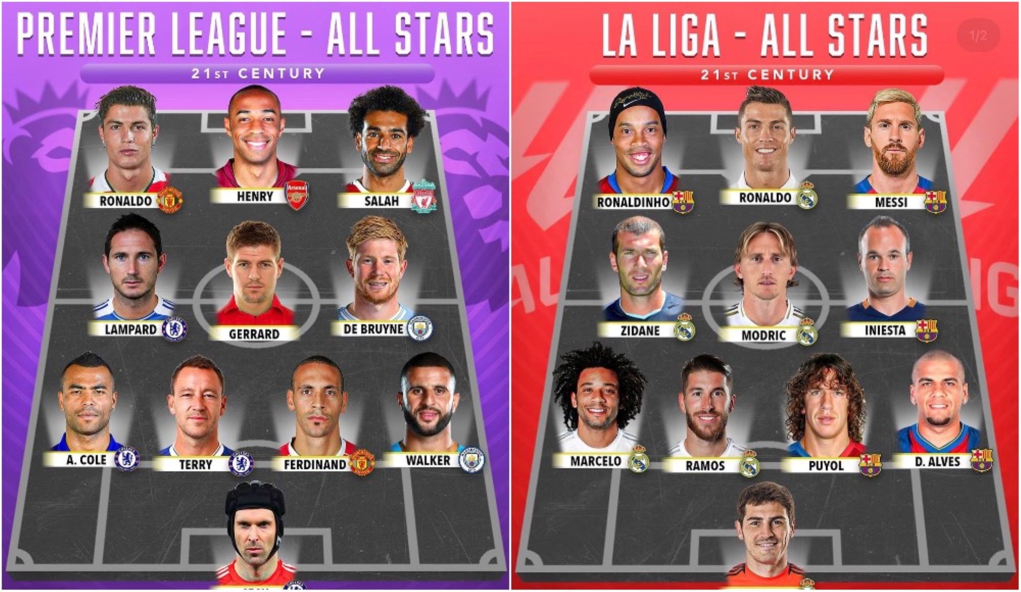 Сборные Ла Лиги и АПЛ XXI века по мнению...