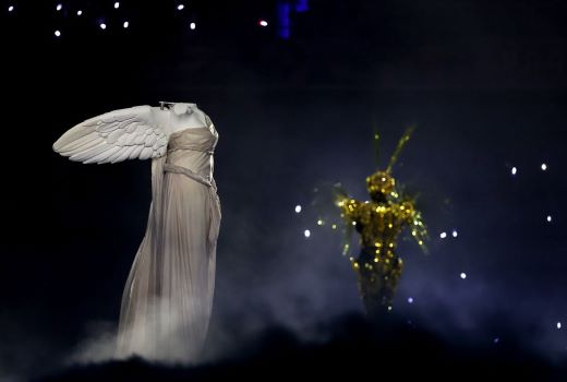 На Олимпиаде имели место имитации, например, вместо огня на воздушном шаре мерцали светодиоды. Так что, может, и этот человек - неодетограмма. |