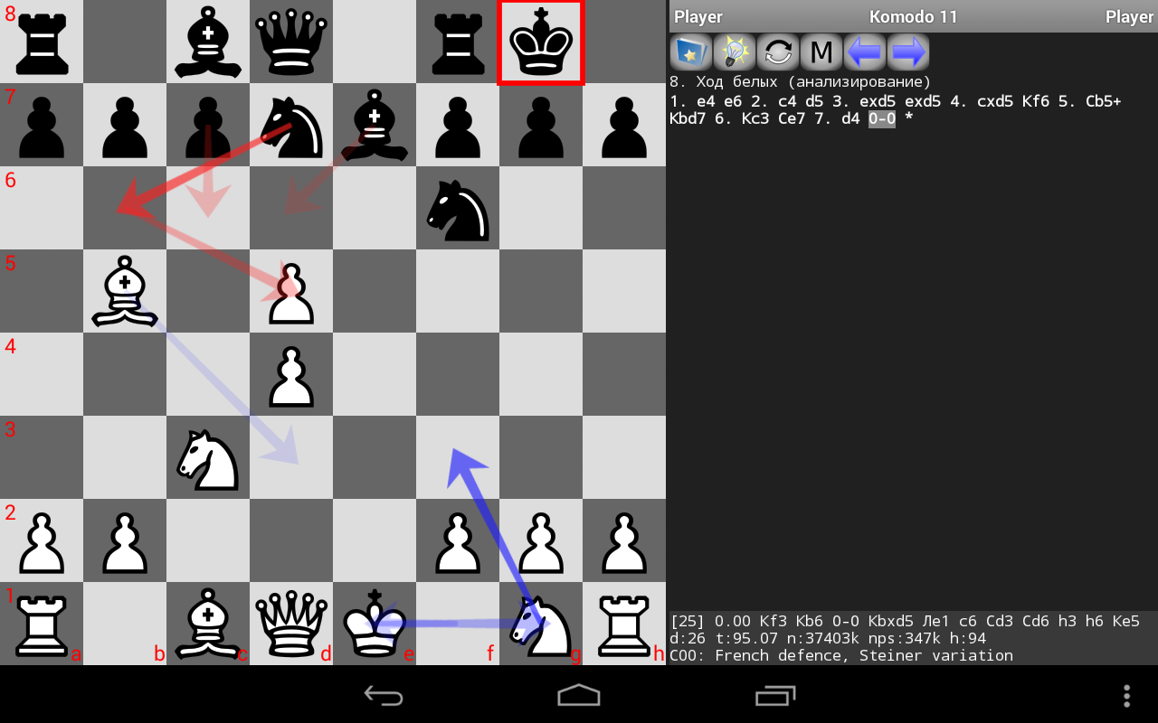 Чёрные наверно могут законно возмутиться по примеру фрау Заурих, мы, мол, играем Каро-Канн, и вы нам не мешайте, но объективно дела у них неплохи. А как обстоят дела у белых? |