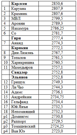 Только что сайт ФИДЕ опубликовал - наконец-то! - список "квалифайеров". По пресловутому пункту а) проходят (внимание!)