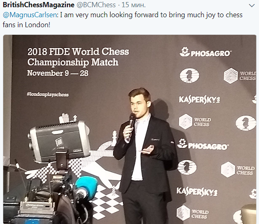 Confirmed: #worldchess2018 with @MagnusCarlsen will be held in London in November |