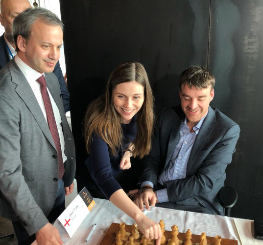 Prime Minister of #Iceland Katrín Jakobsdóttir and #FIDE President Arkady Dvokovich made the first symbolic move in Gawain Jones 🏴󠁧󠁢󠁥󠁮󠁧󠁿 vs Ludwig Deglmann 🇩🇪 thus opening the 34th #ReykjavikOpen. The 1st one in 1964 was won by Mikhail Tal! https://www.reykjavikopen.com/