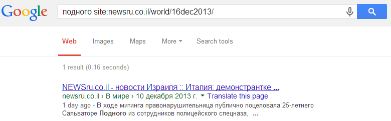 У меня первая ссылка выпала на newsru.co.il, правда, сегодня фамилию уже поменяли на правильную (читают чесспро, не иначе).