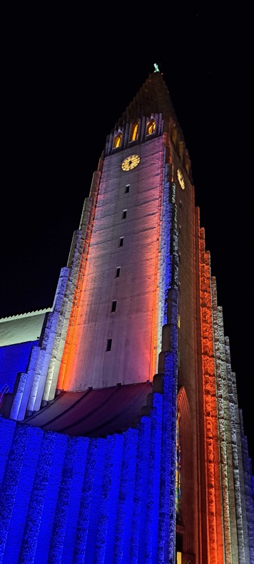 Даже знаменитая на всю Исландию лютеранская церковь Hallgrímskirkja высотой 73 метра смотрелась совсем не так впечатляюще, как тогда ночью с подсветкой