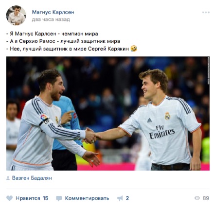Возможно. Только Карлсен - чемпион мира, к тому же от него никто не слышит постоянное "я-я-я"... |