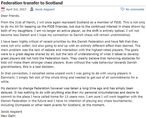 Возможно, наш Якоб мог бы что-то добавить к забавным (?) переходам гроссмейстера (а также автора книг и издателя) Якоба Огорда (Jacob Aagaard): сначала - Дания-Шотландия, затем - Шотландия-Дания, и в этом году снова - Дания-Шотландия
