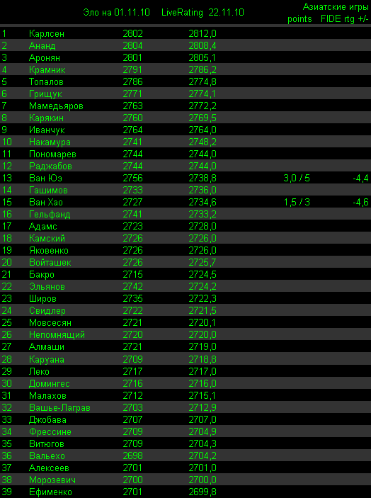 MaxML: Был на сайте чессньюс, там вообще какие-то странные "текущие" рейтинги. |