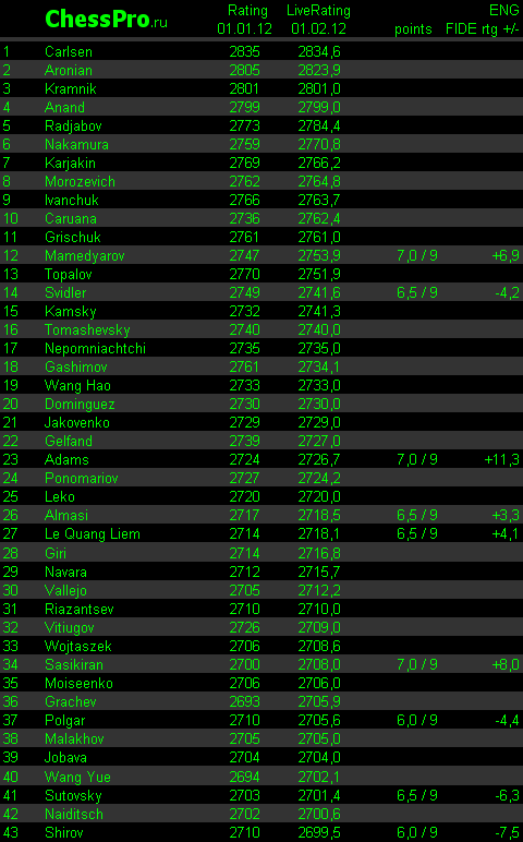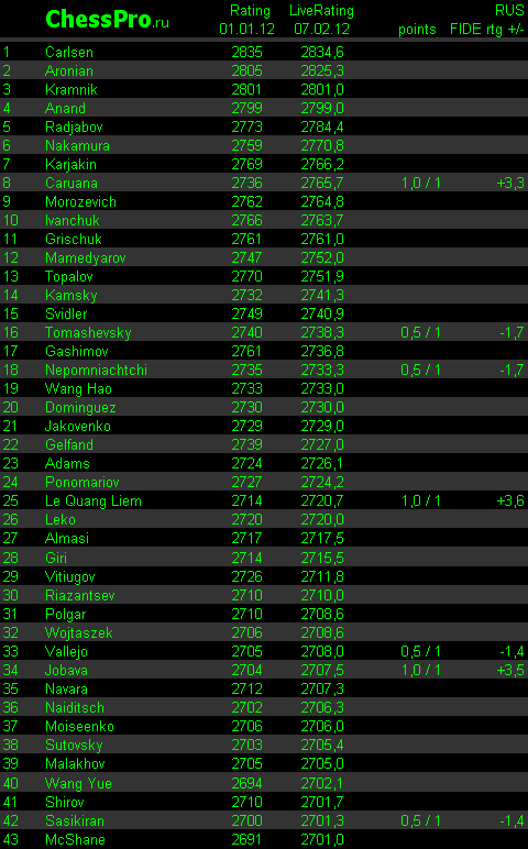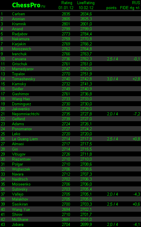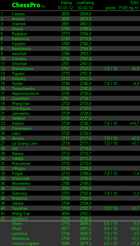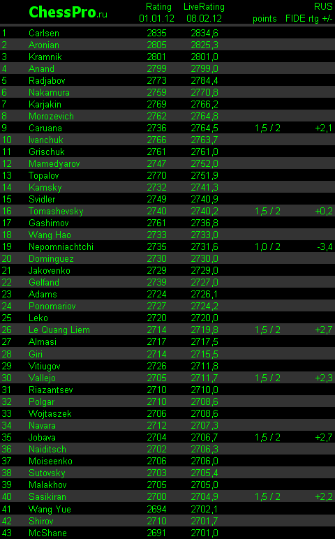LiveRating Club 2700 - 01.02.2012