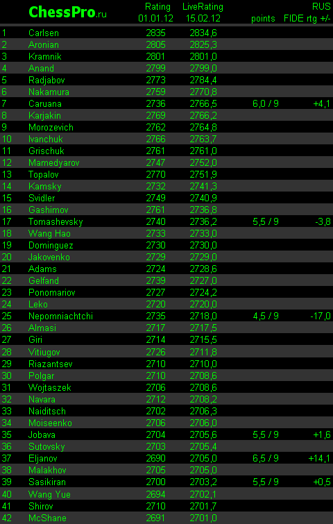LiveRating Club 2700 - 15.02.2012