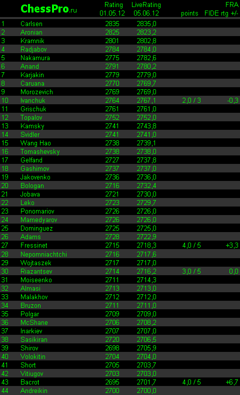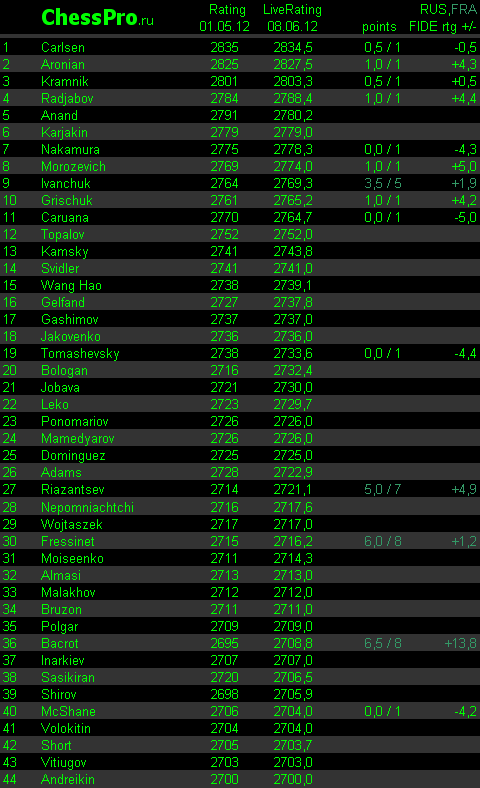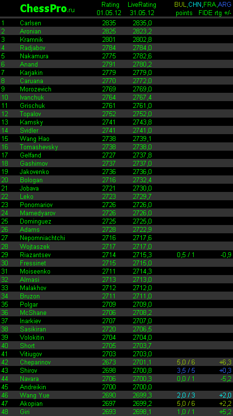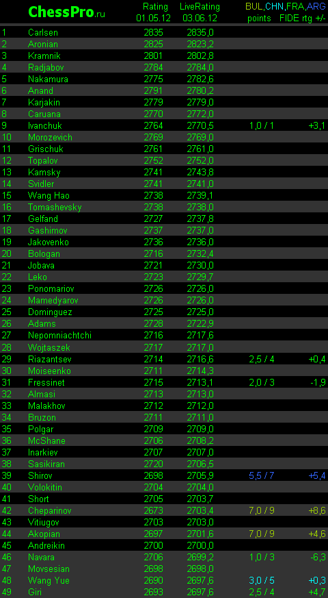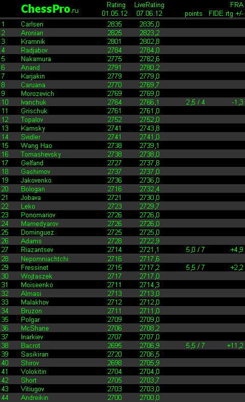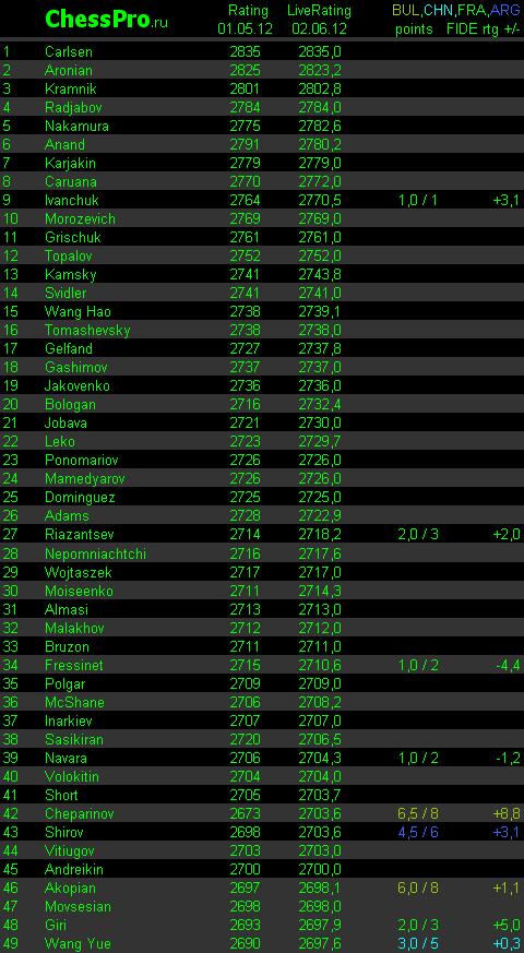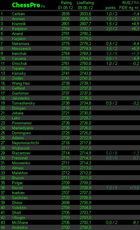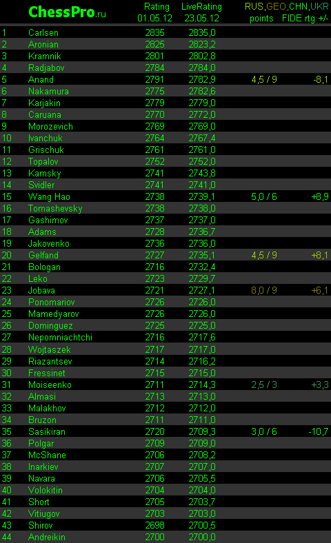 А Морозевич-то от Ананда на 1 очко отстает Вот вам и рейтинг -- как показатель шахматной силы