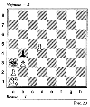 23. a2:Cb3 Cd1-b3 24. h3-h4 b3-b2 25. c2-c3 Kb2-a4 26. h2-h3 Ла4-а6 27. Кра5-b5 Ле4-а4+