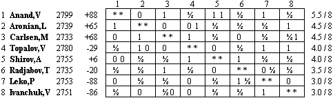 Молодцы Аронян и Карлсен, не дают Ананду уйти в неприличный отрыв...