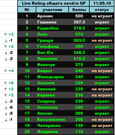 Ну что, Гашимов - Гельфанд или Ван Юэ - Яковенко на завтра? |