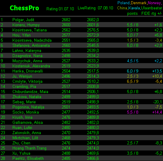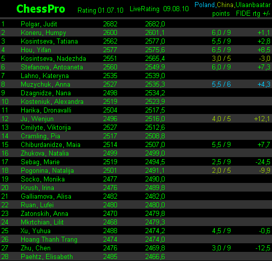 Women's Grand Prix - Ulaanbaatar(Rounds 1-9 of 11)[ Koneru,Hou Yifan, T. Kosintseva, Stefanova, Sebag, Chiburdanidze, Xu Yuhua, Zhu Chen, Zhao Xue ]