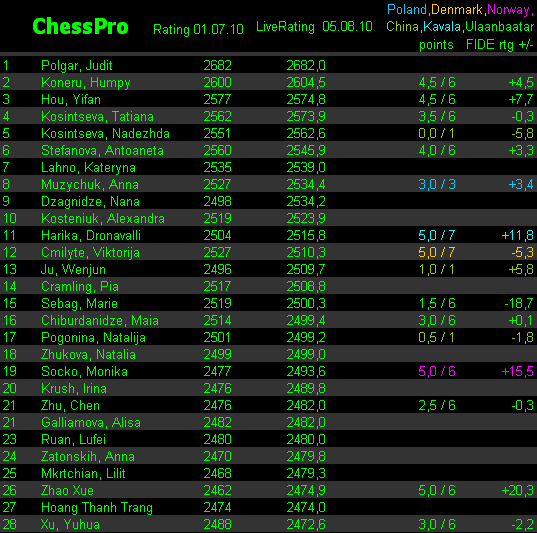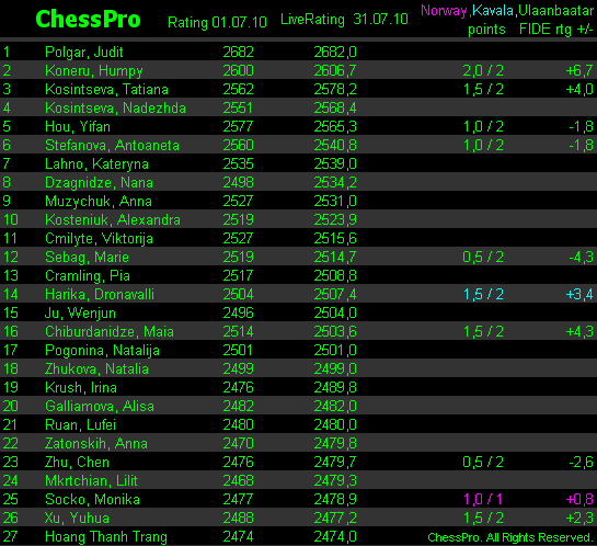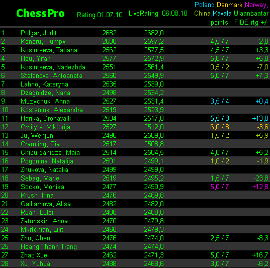 Women's Grand Prix - Ulaanbaatar(Rounds 1-7 of 11)[ Koneru,Hou Yifan, T. Kosintseva, Stefanova, Sebag, Chiburdanidze, Xu Yuhua, Zhu Chen, Zhao Xue ]