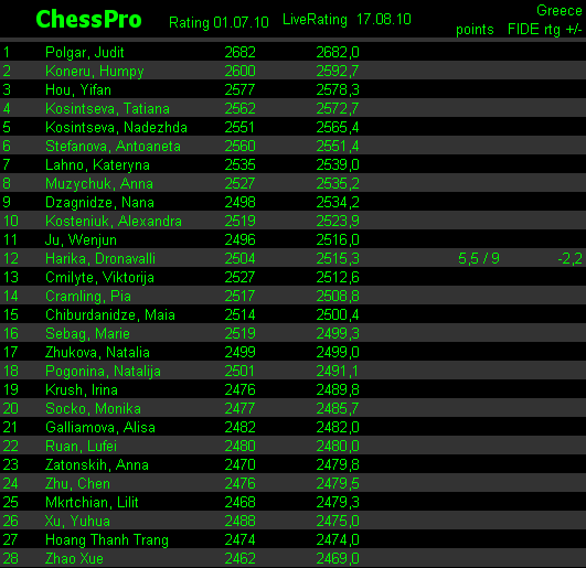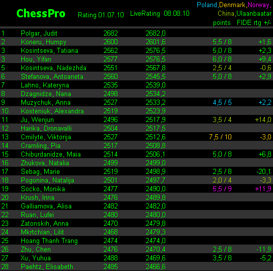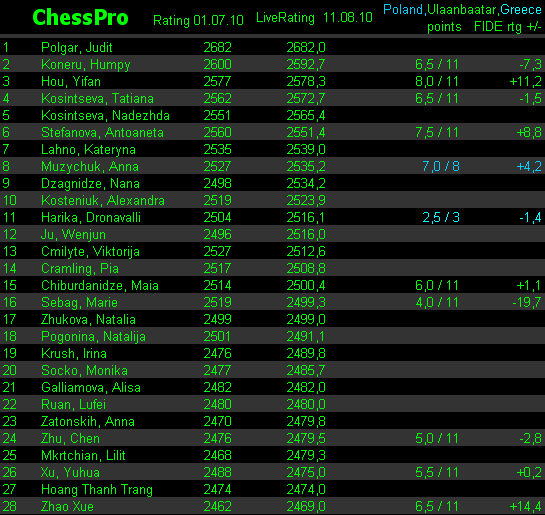 Women's Grand Prix - Ulaanbaatar(Rounds 1-10 of 11)[ Koneru,Hou Yifan, T. Kosintseva, Stefanova, Sebag, Chiburdanidze, Xu Yuhua, Zhu Chen, Zhao Xue ]