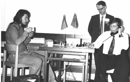 старые добрые времена. первый чемпионат мира среди компьютеров, Стокгольм 1974. CHAOS против Каиссы. Каисса, разумеется, выиграла - и эту, и все прочие, и чемпионат)
