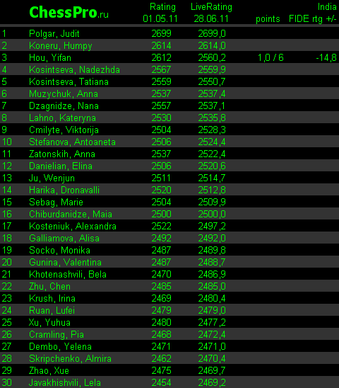 AAI International Grandmasters (Rounds 1-6 of 10 )[ Hou Yifan ]