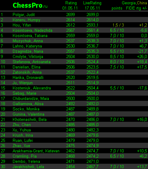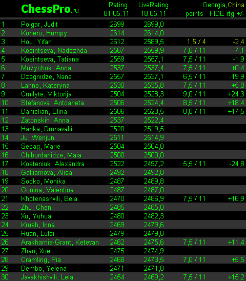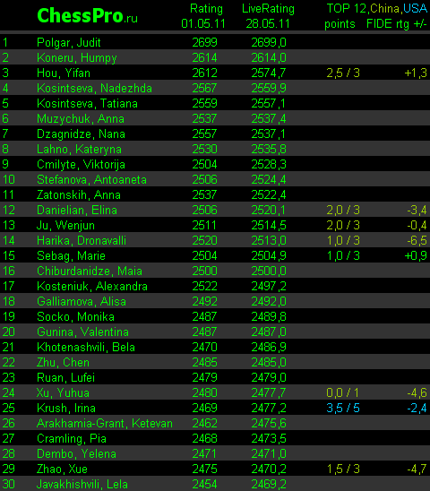 2011 Chinese Chess League Division A - R1,R2,R3 (3 rounds) [Hou Yifan,Ju Wenjun,Zhao Xue,Xu Yuhua,Shen Yang ] |