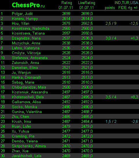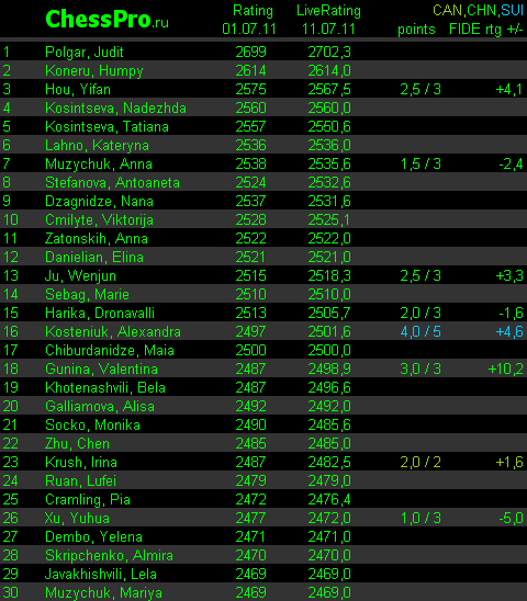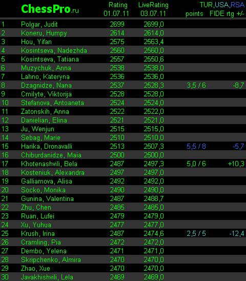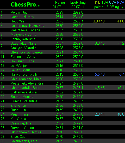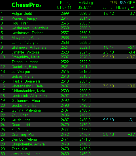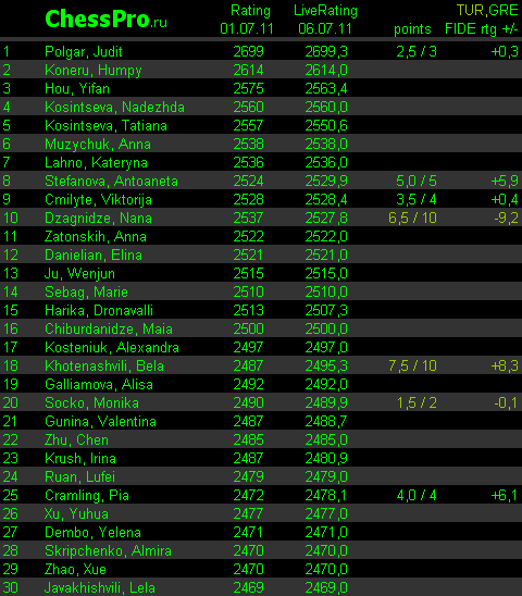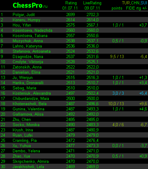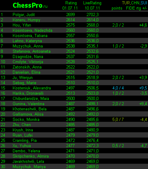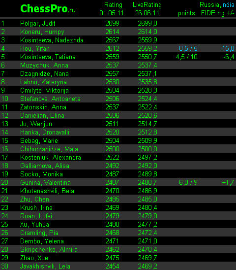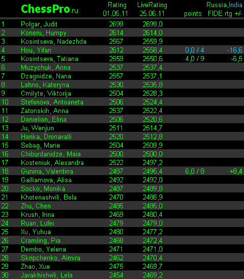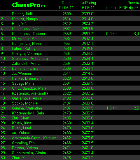 HL Women's 61. RUS Chmp. 2011 (Rounds 1-1 of 9 ) [ Gunina ]