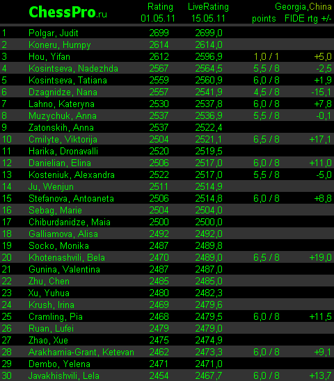 HL Women's 61. RUS Chmp. 2011 ( 9 rounds ) [ Gunina ] |