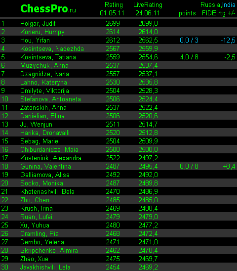 HL Women's 61. RUS Chmp. 2011 (Rounds 1-8 of 9 ) [ Gunina ]