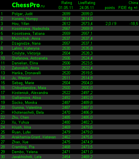 2nd Hainan Danzhou Chinese Top Grandmaster Chess Tournament (Rounds 1-3 of 9) [ Hou Yifan ]