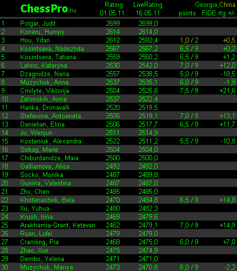 Asian Individual Open Chess Championship (9 rounds) [ Hou Yifan ]