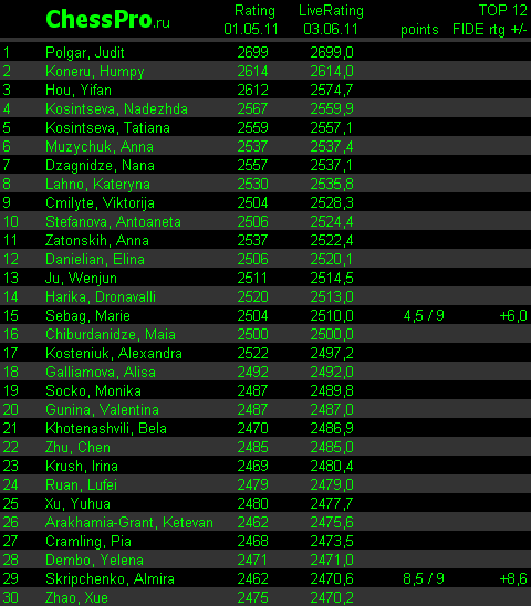TOP 12 (Rounds 1-9 of 11 ) [ Sebag,Skripchenko ]