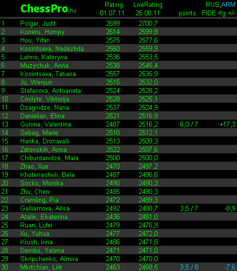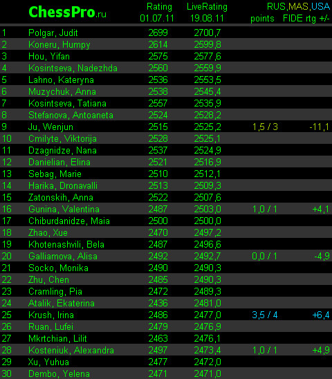 HL Women's 61. RUS Chmp. 2011 ( 9 rounds ) [ Gunina ]