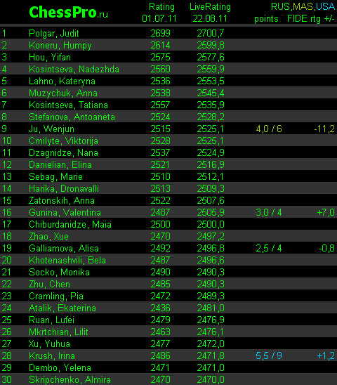 Russian Womens Superfinal (Rounds 1-5 of 9 ) [ Kosteniuk, Galliamova, Gunina, Pogonina ]