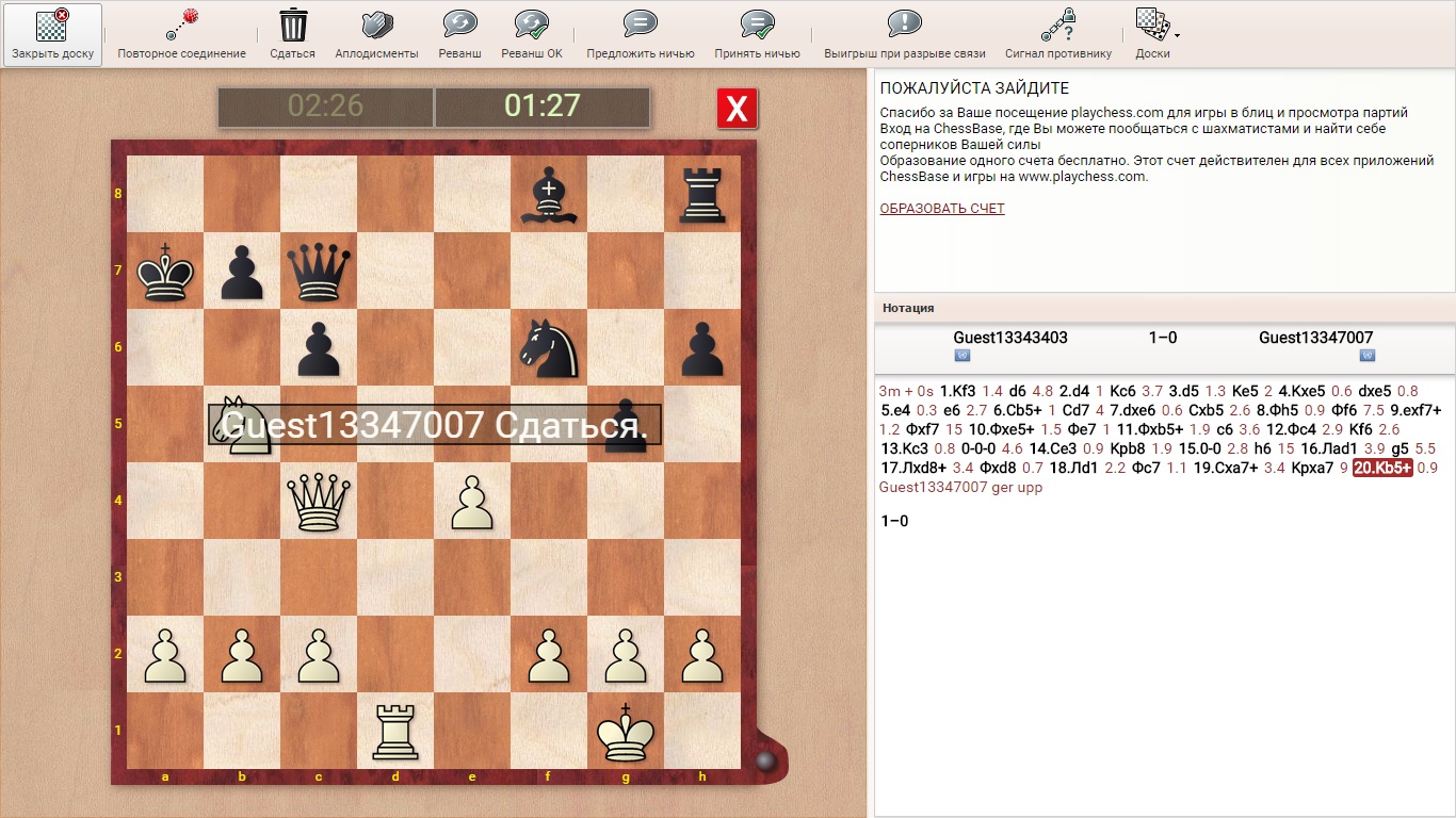 Рассчитав до этого манёвр ферзём в несколько ходов, белые, позёвывая, дали шах Фa5+??, как им издали казалось, с разменом ферзей, но после ...b5! проиграли.