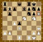 1. e4 c6 2. d4 d5 3. ed ed 4. Сd3 Кf6 5. Кf3 Кe4?! 6. 0-0 Сg4 7. c4 c6 8. Кc3 К:c3 9. bc Сd6? 10. Лe1+ Сe6 11. Кg5 h6?