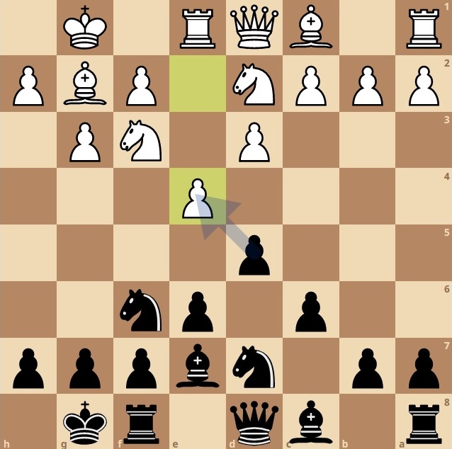 1.d4 d5. 2.c4 e6. 3.Kf3 Kf6. 4.g3 b6. 5.Cg2 Cb7. 6.Ke5 Cb4+. 7.Cd2 C:d2+. 8.K:d2 Kbd7. 9.Фа4 0-0. 10.Кс6?! Фе8.