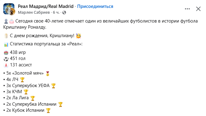 | Ласкер, у Роналду 4 ЗМ в Реале, не 5. Что за источники? |