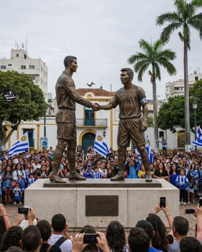 В самом сердце столицы Уругвая, на оживлённой городской площади, сотни футбольных фанатов собрались, чтобы запечатлеть исторический момент перед уникальным произведением — реалистичной бронзовой статуей, изображающей культовое рукопожатие мировых звёзд Криштиану Роналду и Лионеля Месси. Возвышаясь на высоком и внушительном постаменте, эта скульптура не только отдаёт дань уважения двум величайшим футболистам в истории, но и несёт в себе глубокий и благородный посыл: единство, уважение и отказ от фанатизма.