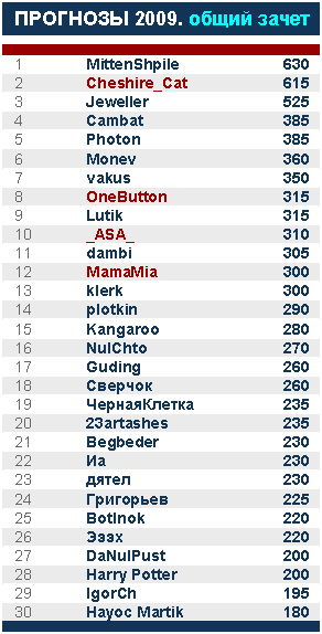 Победитель конкурса прогнозов «София 2009» – Cheshire_Cat