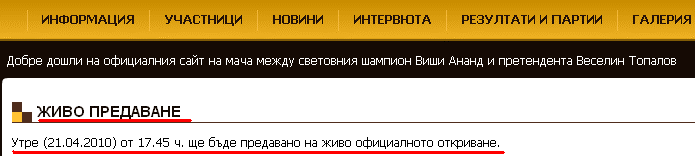 WCh Anand - Topalov Sofia (BUL), 23 iv - 12 v 2010