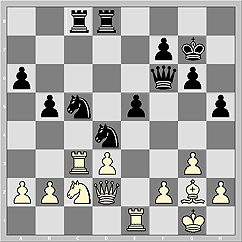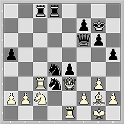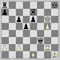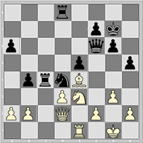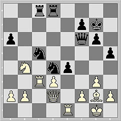 Первый и самый главный в этом фрагменте. Берём вариант 13-го чемпиона мира и после 27.Rc4 ставим диаграмму.
