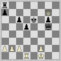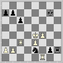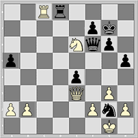 44...Kf6!! 45.Qxg3 Rh1+ и чёрные остаются с лишней башенкой: 46.Kf2 Rxf1+ 47.Kxf1 Nxg3+, и белые король с ладьёй нанизываются на вилку: 48.Ke1 Rh1+ 49.Kd2 Ne4+.