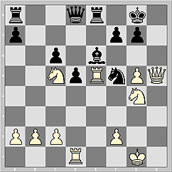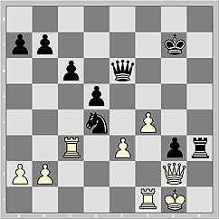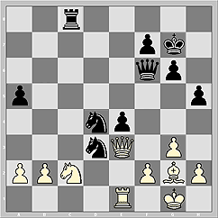 Последовало 37.f3, и чёрные после 37...gxf3 38.Nxf3 (плохо и 38.Qxf3 Rf8 39.Qe2 Rf2! 40.Qxf2 Nxf2 41.Kxf2 Qg6 Каспаров) 38...Rh7 39.Qe5 Qc8 40.Qf4 Rf8 41.Qe5 Rf5 «выловили» ферзя, вслед за чем белые немедленно сдались.