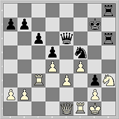 Чуть больше хитрости и усилий придётся затратить в случае более упорного 28...Kh8! 29.Kh1! (именно сюда; 29.Kg2 Qc7) 29...Qxb4 30.Nxe6 fxe6 (30...Rxe6?? 31.Rxe6 fxe6 32.Qe5+) 31.Qg6 Qf8 32.Kg2! Ra7 (32...Qe7 33.Rxe6!) 33.Rf1 Qe7 34.Rg5 Rb8 35.Rb1! Rba8 36.Rh1 и почти на любой ход белые, из чисто из эстетических побуждений, разумеется, переходят в пятиладейный эндшпиль посредством 37.Qg7+ Qxg7 38.hxg7+ Kg8 39.Rh8+ Kf7 40.g8R! Как мне кажется, это - самая «громкая» возможность молчаливо предложить сопернику сразу сдаться. Особенно в блице.