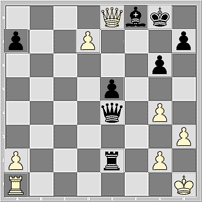 27.Qh8! (27.Rg1!?) 27…Qc5. При других продолжениях, похоже, получаются варианты-клоны: 27...Qc8 28.Qxh7+ Ke8 29.Qh8+ Rf8 30.Qe5; 27...Qb6 28.Qxh7+ Ke8 29.Qh8+ Rf8 30.Qe5.