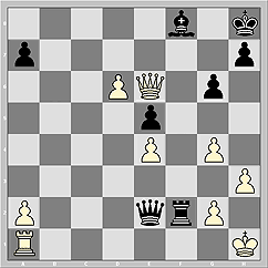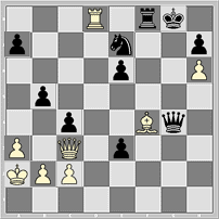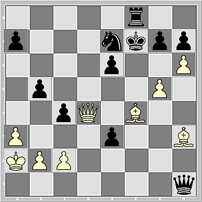 Но всё оказалось гораздо проще и значительно элегантнее. Ибо, как указано в статье на ChessBase.com, что мною было обнаружено, к счастью, много позже, чем найден предыдущий способ выигрыша, белые выигрывают после 27.Qe5! Qh5 28.Qxe6+ Qf7 29.Qxf7+ Kxf7.