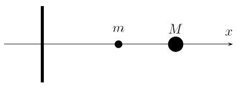 Вдоль оси x могут двигаться без трения два шарика с массами m и M. Слева от шариков поставлена абсолютно упругая стенка, от которой шарики отскакивают без потери энергии (ясно, что со стенкой будет сталкиваться только шарик с массой m). Столкновения шариков между собой также считаются упругими.