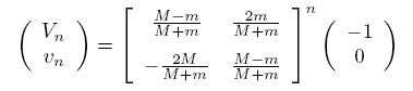 UPD. Более не менее дорешал. Ответ: 2*pi/а, где а = arcsin(2 sqrt(M m)/(M+m)). Округлить надо, конечно, и, может один добавить. При приведенном соотношении масс получается pi*10^q. |