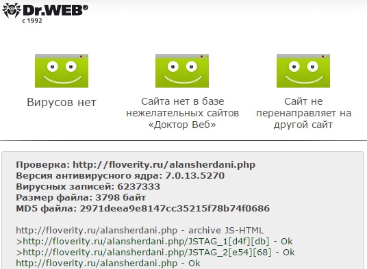Вирустотал: https://www.virustotal.com/ru/url/f30cff0d3a5307c4fe24c401a7428a0f07f94de12cf3eef81f0f7447a3b54af9/analysis/1437504997/